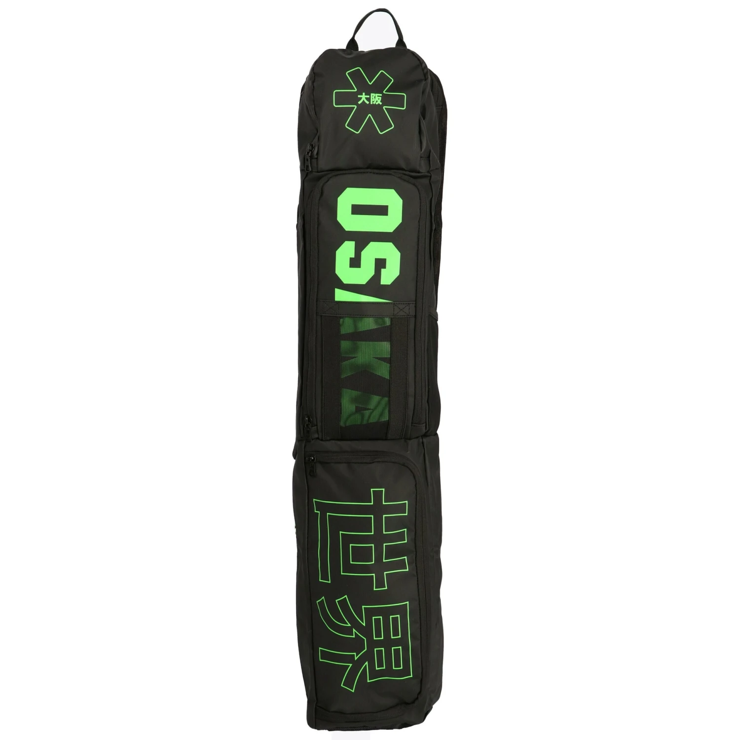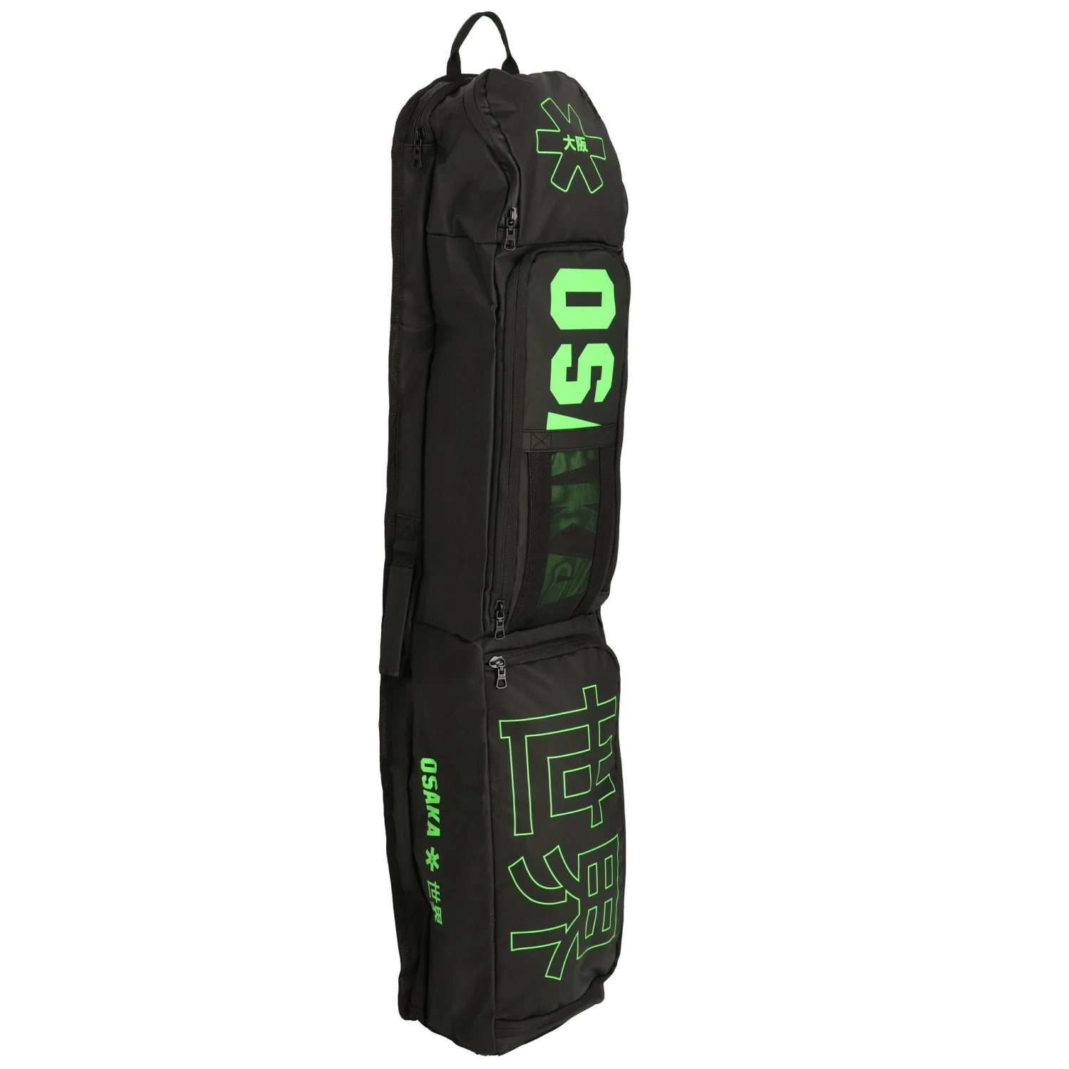 Deze Osaka Pro Tour Medium hockeytas is een compacte tas met ruimte voor 3 hockeysticks. Deze hockeytas van Osaka, in de kleur zwart-groen, is gemaakt van een combinatie tussen polyester en tarpaulin. Deze combinatie zorgt voor een tas die niet te zwaar is en water afstoot. Deze hockeytas is voorzien van één verstelbare schouderriem. Verder bevat de tas meerdere compartimenten zodat vieze kleding of schoenen gescheiden kunnen worden van schone spullen.