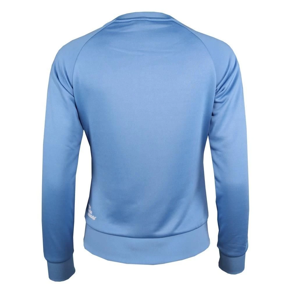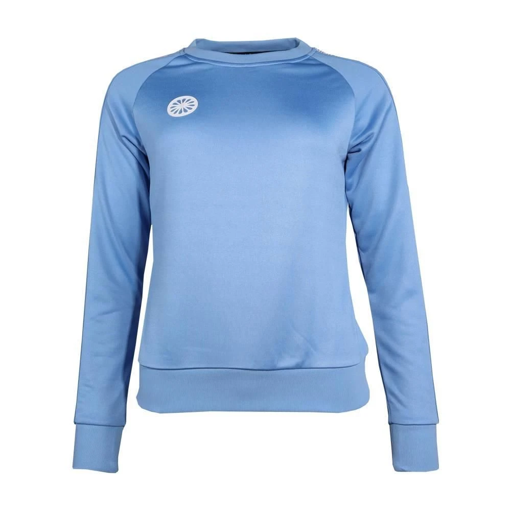 De The Indian Maharadja Poly Terry hockeytrui dames blue is een comfortabele sweater in een lichtblauwe kleur. De The Indian Maharadja hockeytrui heeft merkuitingen over de volledige lengte van de mouwen en een klein logo op de borst. De trui heeft elastische boorden en een ronde hals.
