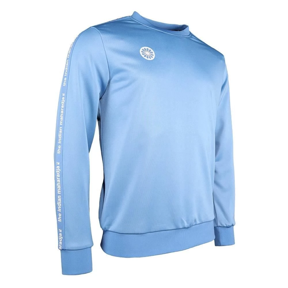 De The Indian Maharadja Poly Terry hockeytrui junior blue is gemaakt van polyester en heeft een lichtblauwe kleur. De The Indian Maharadja hockeytrui heeft lange mouwen en een ronde hals. Zowel de onderkant van de trui als de uiteinden van de mouwen zijn voorzien van elastische boorden.